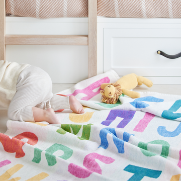 Everything a perfect blanket should be, from A to Z. In a fun mix of playful colors, this design will have your little one reciting their ABCs in no time.