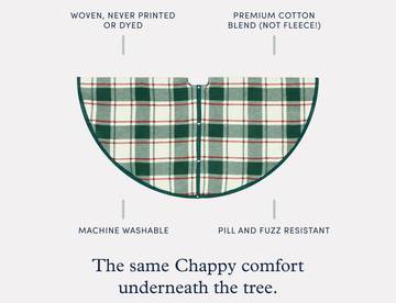 Cozy up your Christmas tree with a ChappyWrap tree skirt! Hang the ornaments, place your Chappy Tree Skirt ‘round the tree—and let the season’s magic begin.