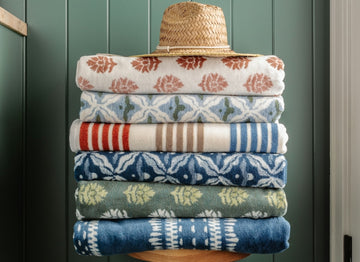 We loved immersing ourselves in The Stripe's very own Grace Atwood’s world of rich colors, warm-weather getaways, and everyday things that delight. Inspired by Grace’s summer memories from her Cape Cod hometown, these designs are just right for a couch-bound book binge or a soak in the sun from your own favorite shoreline.