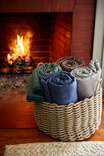 Keep a basket of throws in the living room for movie marathons and late-night chats.